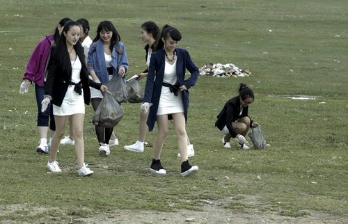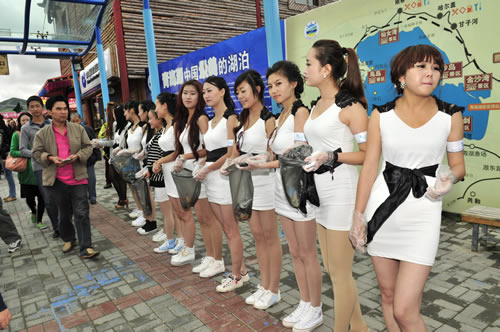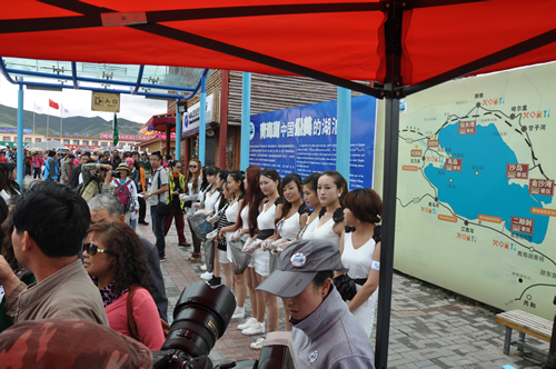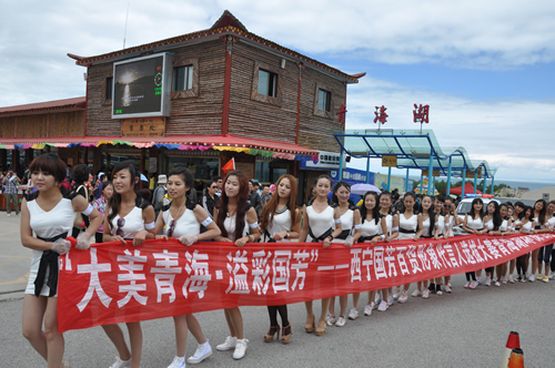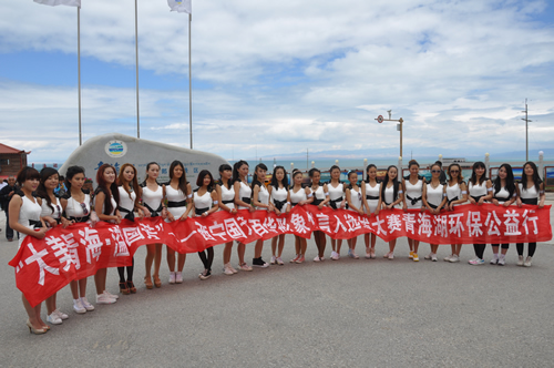 中午,一行到達青海湖畔。天高地闊的美景與靚麗的美女即刻構筑成為一道精彩的風景,隨行攝影師、攝像師即刻拿起機器留下許多難得的好畫面。接下來的環(huán)保實踐與環(huán)保意識推廣為眾多選手留下了深刻的印象,許多選手紛紛表示希望通過自己的行動提高社會環(huán)保意識,讓跟多人參與到保護青海湖環(huán)境中來。
