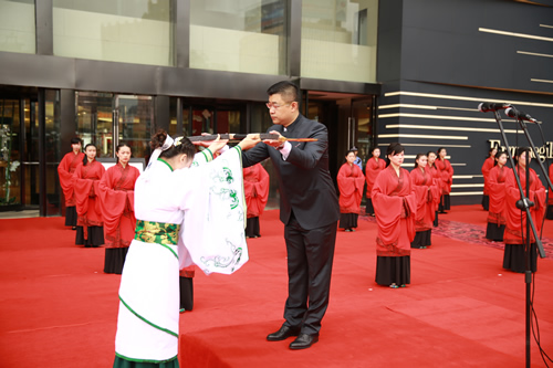 “人類因夢(mèng)想而偉大,企業(yè)因文化而繁榮”。為迎接國(guó)芳集團(tuán)十六周年司慶,9月5日9時(shí)許,于國(guó)芳百貨購(gòu)物廣場(chǎng)正門盛大舉行了傳統(tǒng)漢式迎賓禮——鄉(xiāng)飲酒禮。活動(dòng)雖然已經(jīng)結(jié)束多日,但其熱度不減,該活動(dòng)形式新穎,文化氛圍濃厚,引各方專家學(xué)者熱議。