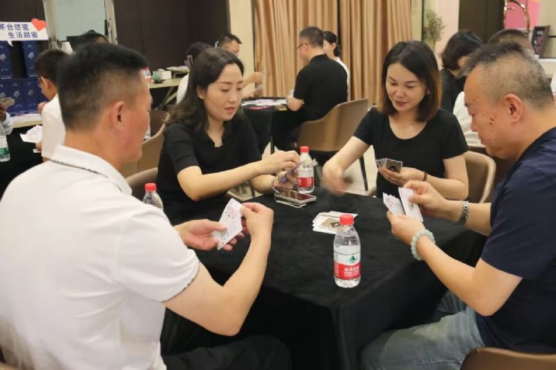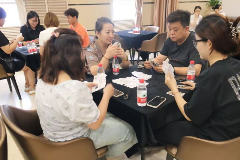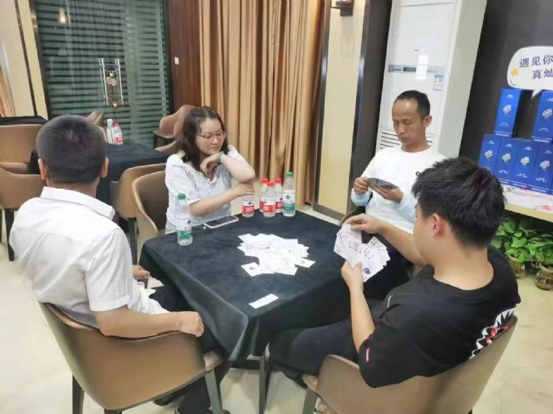 在運動會的摜蛋比賽現(xiàn)場,氣氛熱烈而又緊張。一張張牌桌整齊排列,參賽選手們兩兩相對而坐,神情專注而投入。他們的目光緊緊鎖住手中的牌,大腦飛速運轉(zhuǎn),思考著出牌策略。每一次出牌都顯得深思熟慮,又充滿了果斷和自信。